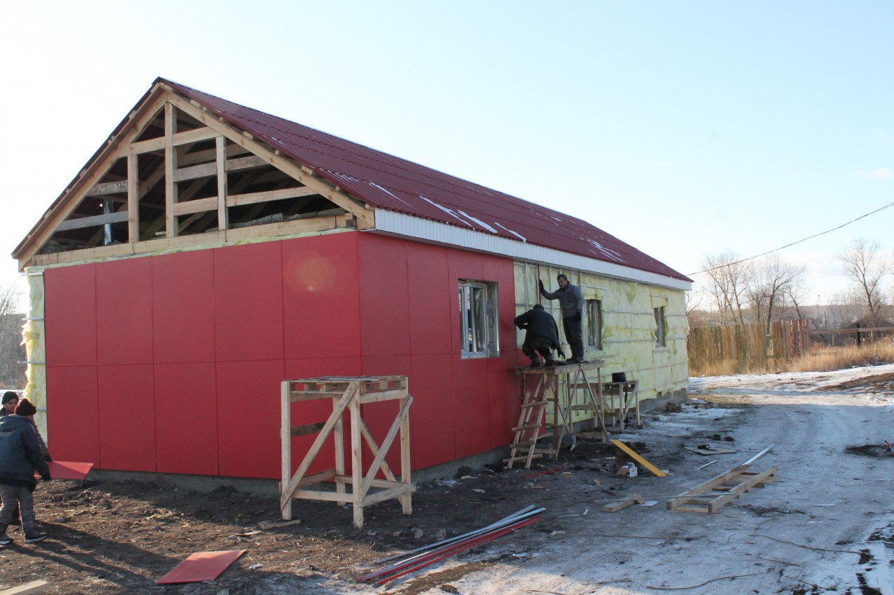 20 октября компания-подрядчик приступила к работе. А уже в январе в три одноэтажных дома, которые построены по технологии быстровозводимого жилья, заедут новоселы. Несмотря на высокий темп строительства, дома получились очень надежные и красивые. Для их отделки комбинат Волна поставил фасадные плиты Виколор ярко-желтого и красного цвета, для кровли использовались листы Волнаколор красного и синего цвета. Эти изделия уже давно зарекомендовали себя как надежные материалы, которые могут прослужить несколько десятков лет без изменения своих свойств. Данные материалы отлично подходят для длительной эксплуатации в суровых сибирских условиях: они не боятся обильных осадков и высокой влажности, не ржавеют, не поддерживают огонь, не гниют и выдерживают как экстремально низкую, так и очень высокую температуру. В условиях сжатых сроков важно, что фасадные плиты Виколор и листы Волнаколор легко монтируются. При этом подобрать можно покрытие любого цвета, в каталоге комбината более 360 оттенков.